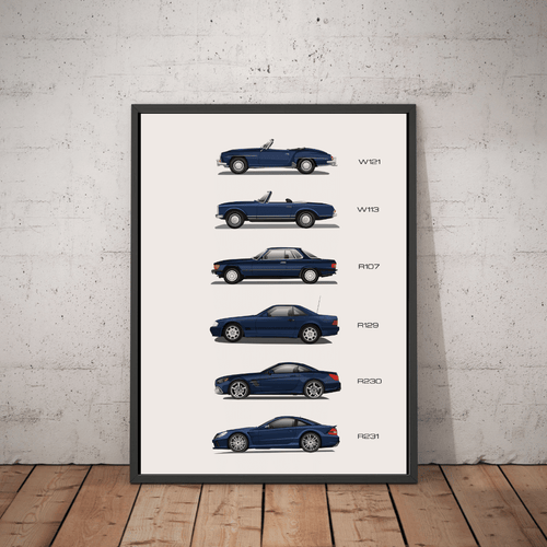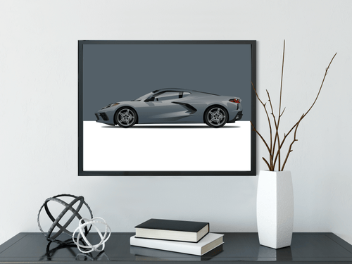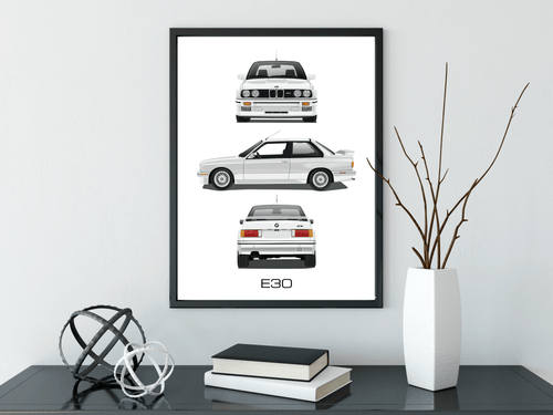 Modern artwork of some of the most iconic cars of the past 60 years - ready to hang in your garage, office or living room.